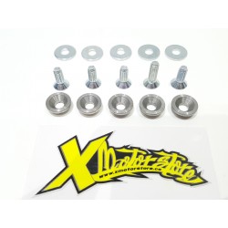 Screw and bushing kit for Dm and Grc minimoto discs. Anti-unscrewing minimoto disc screw kit, it can also be used on hubs with stripped thread, thanks to the practical nut to be positioned on the inside of the disc. The disc screw kit is compatible with: Dm, Grc, Phantom.
