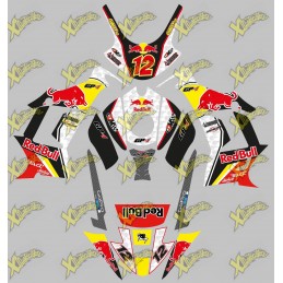 Sticker graphics for Grc rrz3 Redbull. Adhesive graphics for Grc minimoto model Rrz3, very simple to apply as it is already adhesive in every point, it protects the paint from superficial scratches and wear. Possibility of modifications on request of the pilot number. The waiting time may vary depending on the modification requested.