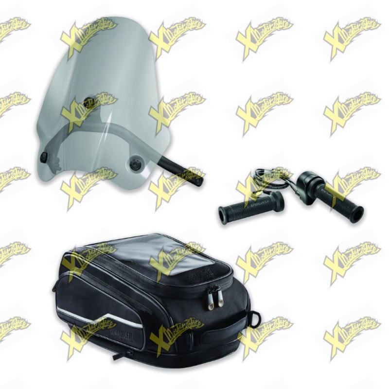 Ducati Scrambler 1100 Journey Pack kit, consisting of a touring fairing, magnetic tank bag, and heated grips. Original Ducati part number 97980742A.