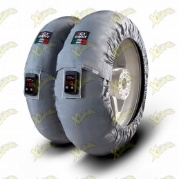 17 "Capit Suprema Vision tire warmers (90/17" - 120/55). Motorcycle tire warmers, motard tire warmers. 17 "Capit tire warmers. Temperature control with Tyrewarmer display, temperature visible on Tyrewarmer screen. It is possible to adjust the temperature directly from the Tyrewarmer screen in a range from 40 to 120 ° C (104 to 248 ° F). Tire warmers for motorcycles and motard with front tire up to 90 and rear up to 120