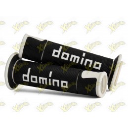 Domino A450 Road Racing grips couple. Pair of two-component thermoplastic rubber motorcycle grips with multi-tone finish.
