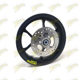 Ohvale GP-2 complete front rim. Ohvale code: R03.RA.0101.L Front rim complete with spacers and bearings for Ohvale Gp-2. Material: Aluminium. Rim color: Black. Dimensions: 2.50x12 Inches. ATTENTION: Disc not included.
