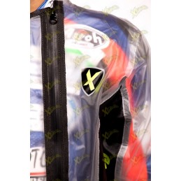Ideal for use on the track, the transparent material allows you to see the sponsor logos on the suit. The Ciabex logos printed on the rain body in fluo color allow excellent visibility of the rider even in case of heavy rain.