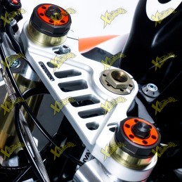 SOSPENSIONE ANT.: Forcella upside down con steli da Ø 33mm e piedini CNC. Config. mola K6-K6.